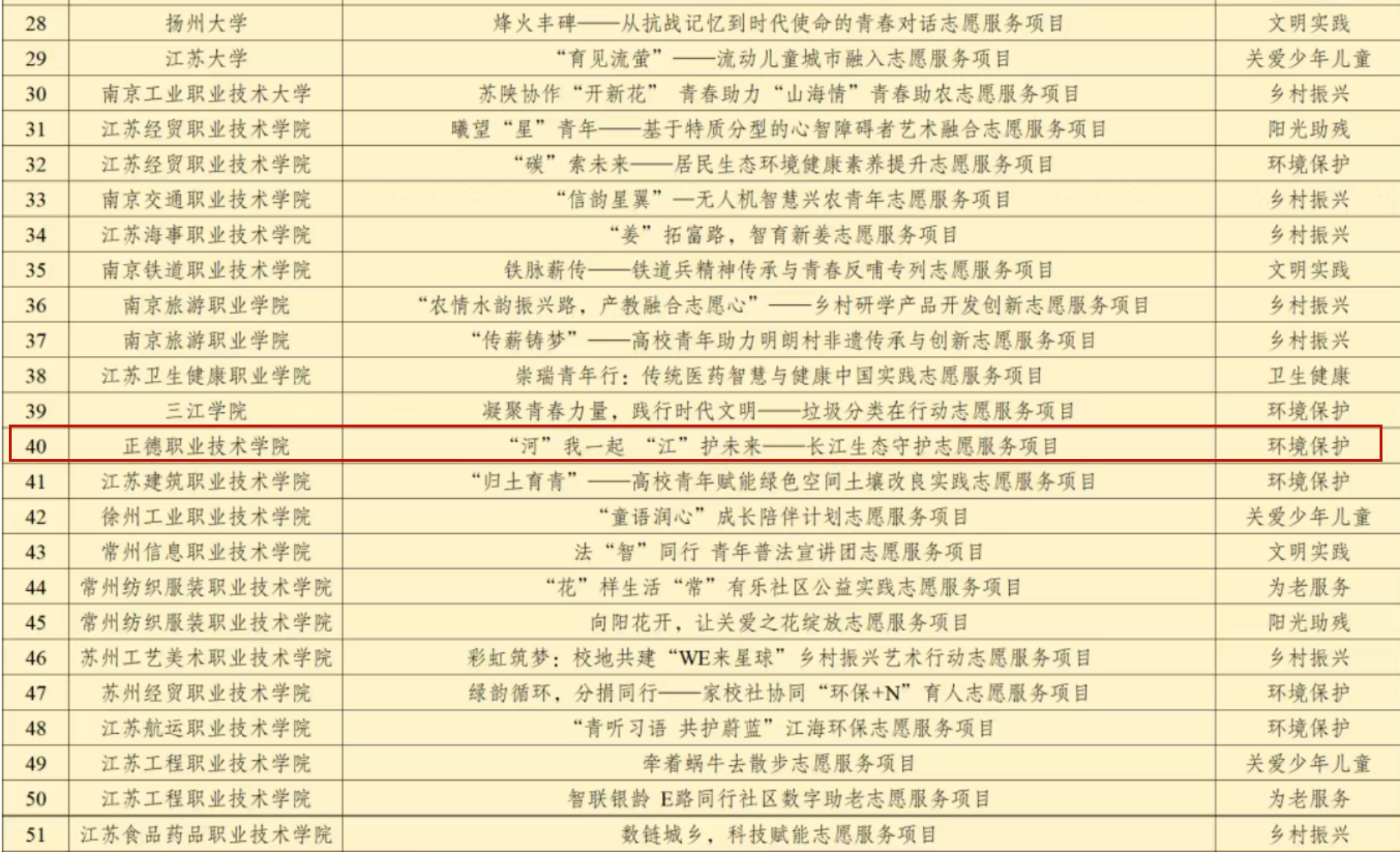 近日,由共青团江苏省委、江苏省青年志愿者协会主办的2025年江苏省高校青年志愿服务项目大赛在南京审计大学落下帷幕。由黄晓帆、魏兴彪、倪冰慧三位教师指导,王宇赫、侯睿研、宋思颖、郭彧、崔为洋、徐文杰、付国一、张博涵、傅媛、李文静等同学为主要成员的《“河”我一起 “江”护未来——长江生态守护志愿服务项目》荣获三等奖,是唯一获奖的民办高职院校。