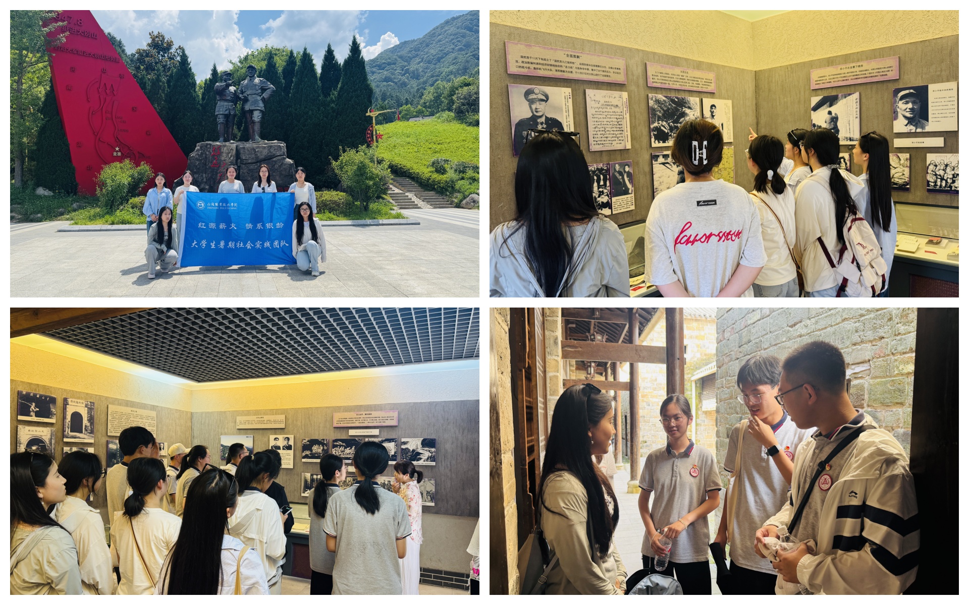 在理论学习的基础上,团队进一步走进红色基地,实地感悟历史脉络。深入安徽六安梅山水库与鄂豫皖红军纪念园,在山水间触摸历史脉络,于交流中感悟红色传承。站在水库大坝,壮阔的水面与雄伟的建筑交织成独特风景。同学们漫步坝区,观察泄洪设施、了解水文监测系统,真切感受先辈们“愚公移山”般的奋斗精神,体会水利工程对六安地区发展的深远意义,让红色实践的认知从人文传承拓展到民生建设维度。