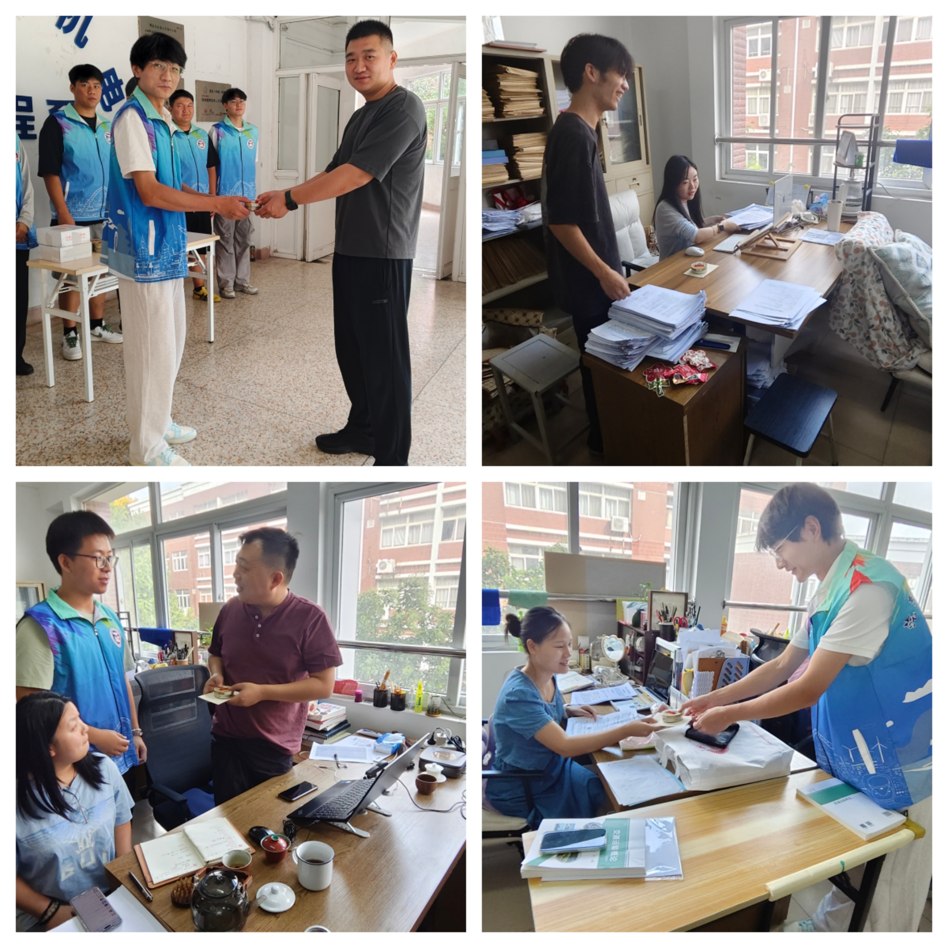 上午,汽机系志愿者们走进7号楼各教师办公室,为每位老师送上一张印有真挚祝福语的贺卡与枇杷糖。志愿者们怀着崇敬之心,将礼物递到教师手中,“老师,祝您教师节快乐!”的温馨话语在办公室里回荡,传递出对教师的感恩与敬意,也让节日的温暖在校园中流淌。