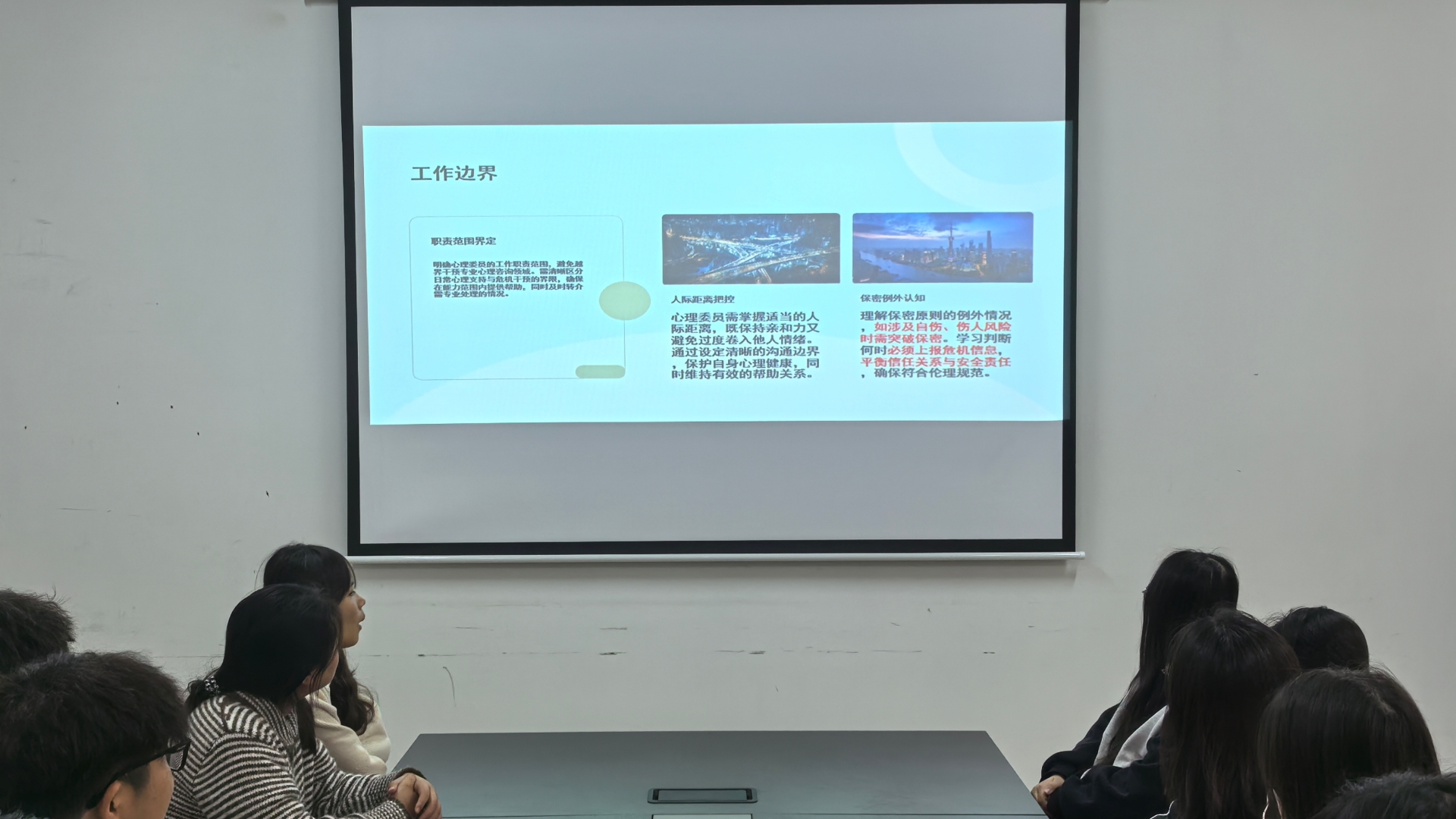 汽车与机电工程系将持续加强心理委员队伍建设,计划推行 “心理委员月度研讨沙龙”制度,通过常态化案例复盘、技能督导等方式,为心理委员提供持续的专业支持和成长平台。