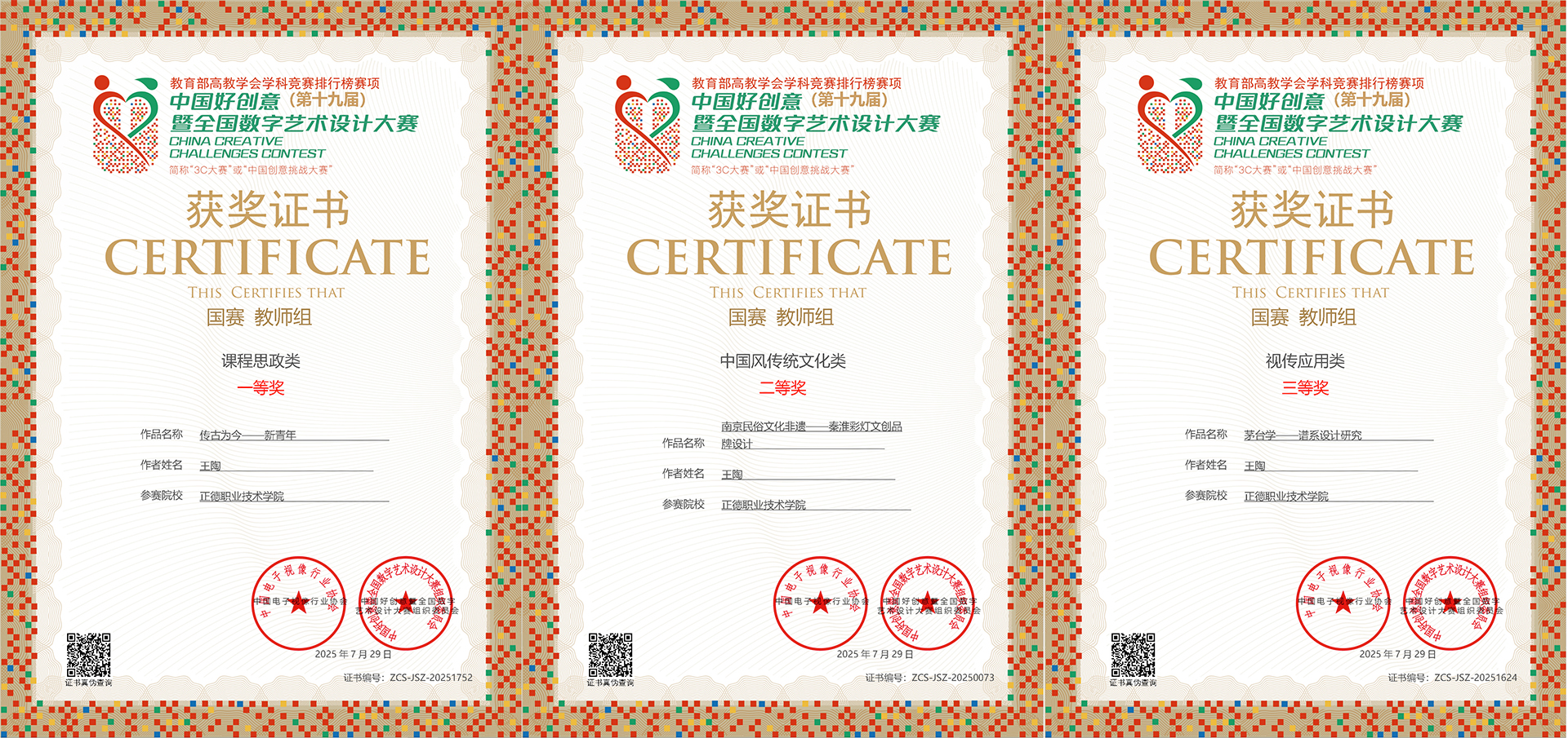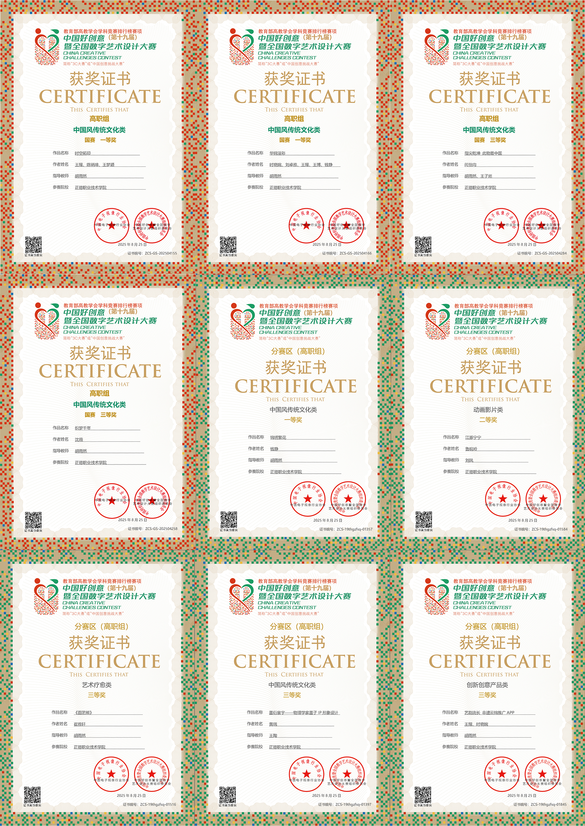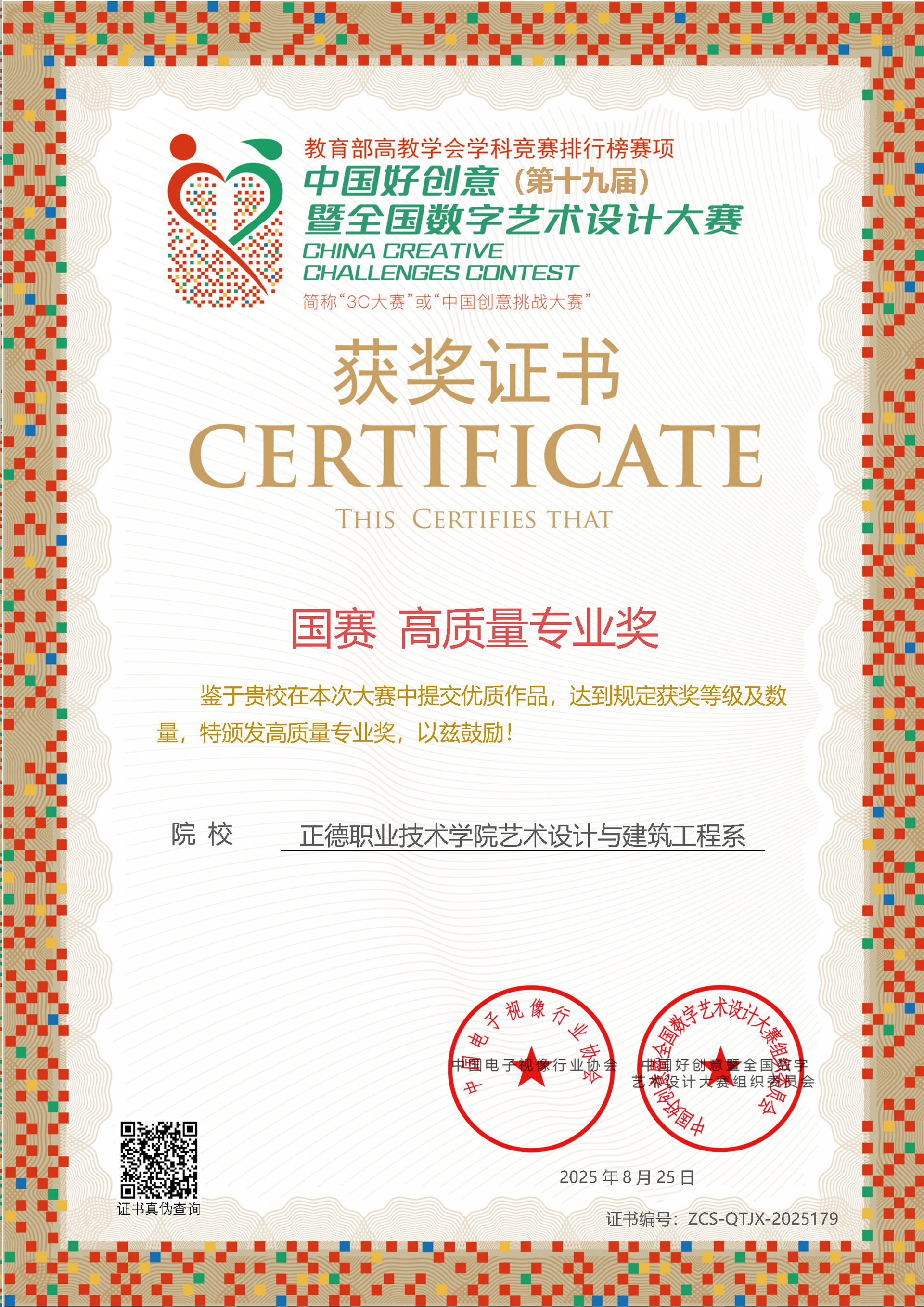 8月25日,第十九届中国好创意暨全国数字艺术设计大赛园满落幕,我院艺术设计与建筑工程系师生凭借卓越的创意实力与专业水平,荣获国家级一等奖3项、二等奖1项、三等奖3项,省级奖项5项,并首次摘得国赛“高质量专业奖”,获奖数量与层级均创历史新高,充分彰显了系部在数字艺术教育领域的深厚积淀与创新活力。