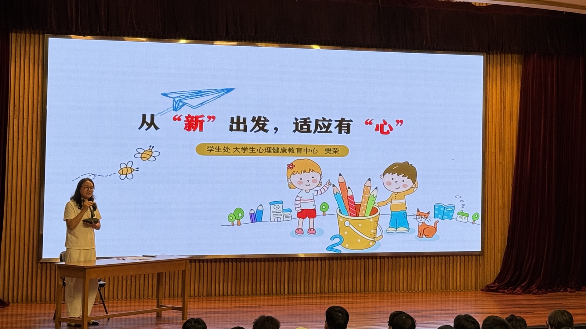 为帮助新生顺利适应大学生活、提升心理调适能力,9月14日,我院大学生心理健康教育中心樊荣老师面向艺术设计与建筑工程系2025级全体新生开展了一场题为“从‘新’出发,适应有‘心’”的专题讲座。本次讲座以“心理赋能”为核心,通过理论解析、案例分析和实用工具分享,为新生提供了全方位的适应指南,现场反响热烈。