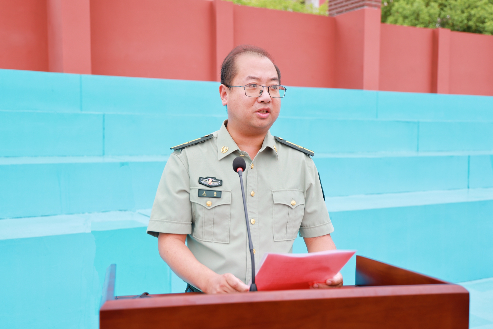王伟宣读了《关于表彰2025级新生军训内务卫生先进单位、军训标兵、优秀学员的决定》。
