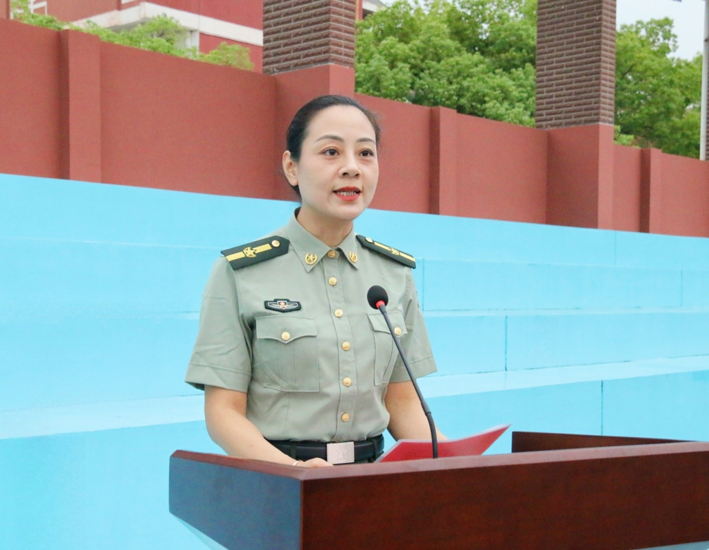 梁薇向承训部队赠送锦旗,并作总结讲话。她为军训团全体官兵对此次军训任务的精心组织、科学施训表示衷心的感谢。她为同学们经受住军训的严格考验,展现出良好的精神风貌和顽强的意志品质感到骄傲。同时,她也向全体新生提出三点希望:一是以军训之姿,筑成长之基,将军训磨砺出来的坚韧与自信,融入未来的学习与生活,敢于迎难而上、自我超越;二是以军训之魂,育品格之美,将军训中守纪、真诚、担当、勇敢等优良品格,汇聚为自身的青春底色,努力成长为有品德、有情怀、有温度的新时代青年;三是以军训之志,赴时代之约,以军训点燃的热血豪情,将个人理想与国家发展、民族复兴的事业紧密相连,勤学笃行,用实际行动践行“强国有我”的青春誓言。