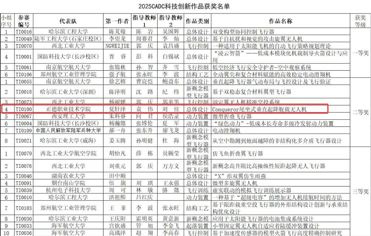 此次参赛充分展现了我院学子在航空航天模型领域的专业技能与创新实力,体现了我院“以赛促教、以赛促学”实践教学改革的成效。航模队将以此为契机,继续发扬精益求精的工匠精神,在更广阔的舞台上为校争光,为航空航天领域培养更多高素质技术技能人才。