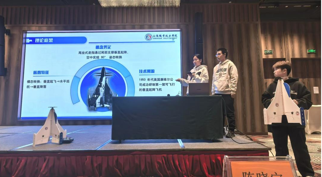在科技创新评比环节,由夏轩哲、蒋子涵、田函屹三位同学组成的设计团队,在袁伟、刘佳老师的指导下,展示了自主研发的“尾坐式垂直起降舰载无人机”。这一设计不仅体现了对前沿技术的理解,更展现出将理论知识转化为实践成果的能力。在答辩过程中,队员们条理清晰地阐述了创新设计理念与关键技术突破,以其扎实的专业基础和解决实际问题的能力赢得了评委的一致认可,最终荣获二等奖。首次参加全国大赛电动滑翔机项目的吴锐机组与周子悦机组虽然未能获奖,但通过与全国强校的交流竞技,积累了宝贵的赛场经验,为今后的训练提升明确了方向。
