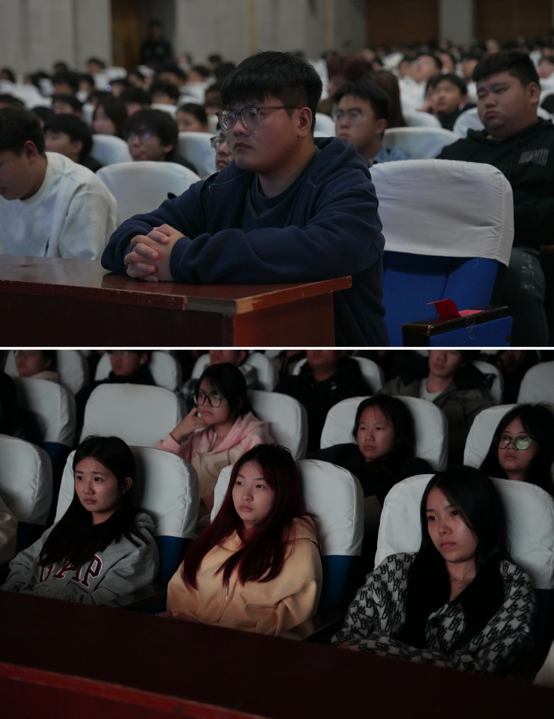 为深入推进校园文化建设,深化爱国主义教育,发挥优秀影视作品的思想引领作用,10月23日下午,我院联合江苏省电影集团在报告厅举办“青春光影 逐梦未来”主题电影专场放映活动。本次活动精选两部兼具思想深度与艺术价值的影片《孤注一掷》《志愿军:存亡之战》,通过光影艺术为师生呈现了一场震撼心灵的精神盛宴,吸引近七百名师生到场观影,其中《志愿军:存亡之战》以其厚重的历史底蕴和强烈的情感共鸣,成为全场瞩目的焦点。